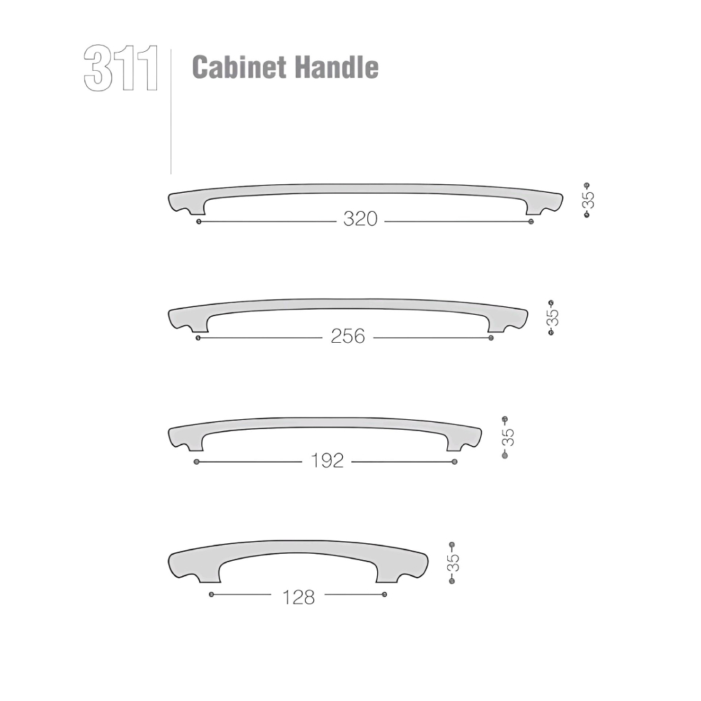 دستگیره 311 از سری دستگیرههای مدرن بهریزان که به نسبت طراحی ساده و شکیل آن، طرفداران بسیاری را جذب کرده است؛ متریال این دستگیره آلیاژ زاماک میباشد. این دستگیره در 6 رنگ عرضه میشود.