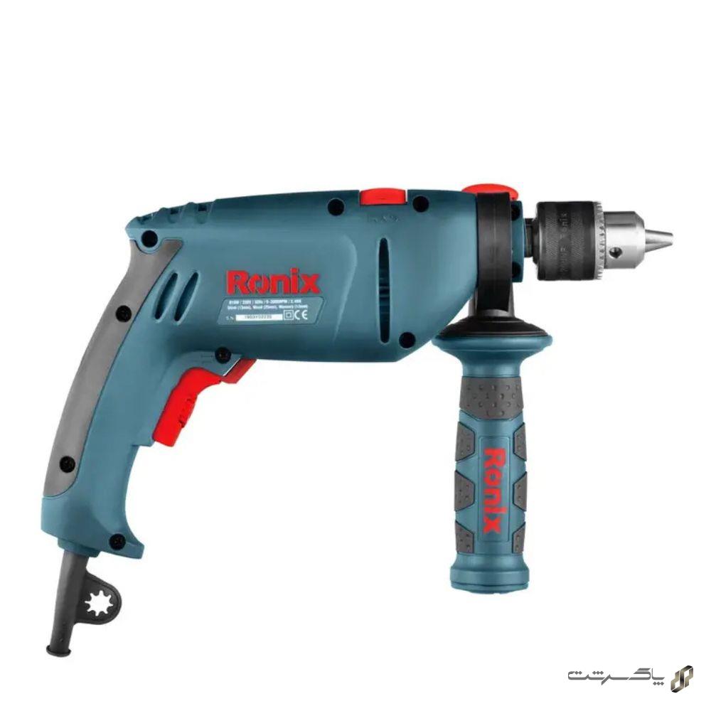 رونیکس مدل 2210 با موتور صنعتی ۸۱۰ وات، دریل برقی با قابلیت چکشی و سهنظام فلزی ۱۳ میلیمتری، ابزاری حرفهای برای سوراخکاری دقیق روی بتن، فلز، چوب و سایر متریالهای سخت است. همراه با دیمر کنترل سرعت و میله عمقسنج.