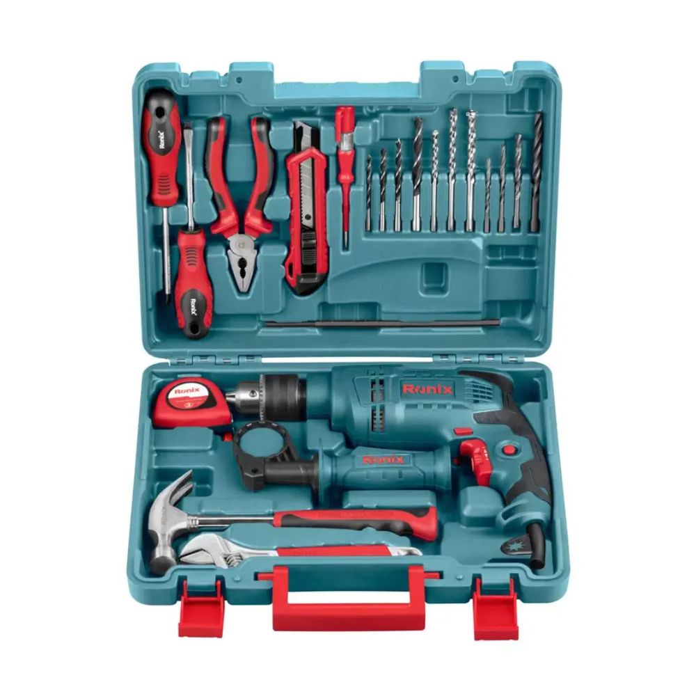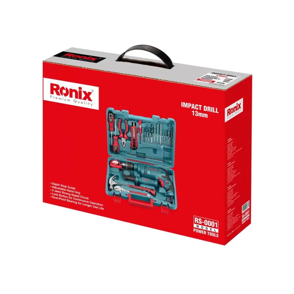 کیت دریل مدل RS-0001 رونیکس، ترکیبی از یک دریل چکشی 650 وات و مجموعهای از ابزارهای دستی و متههای مختلف است. این ست در یک کیف ضدضربه قرار گرفته و برای مصارف خانگی و کارگاهی طراحی شده است.