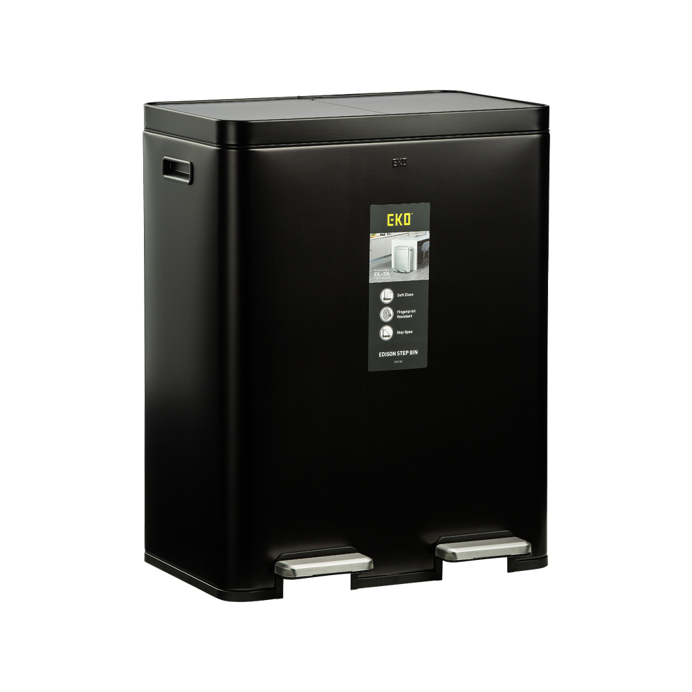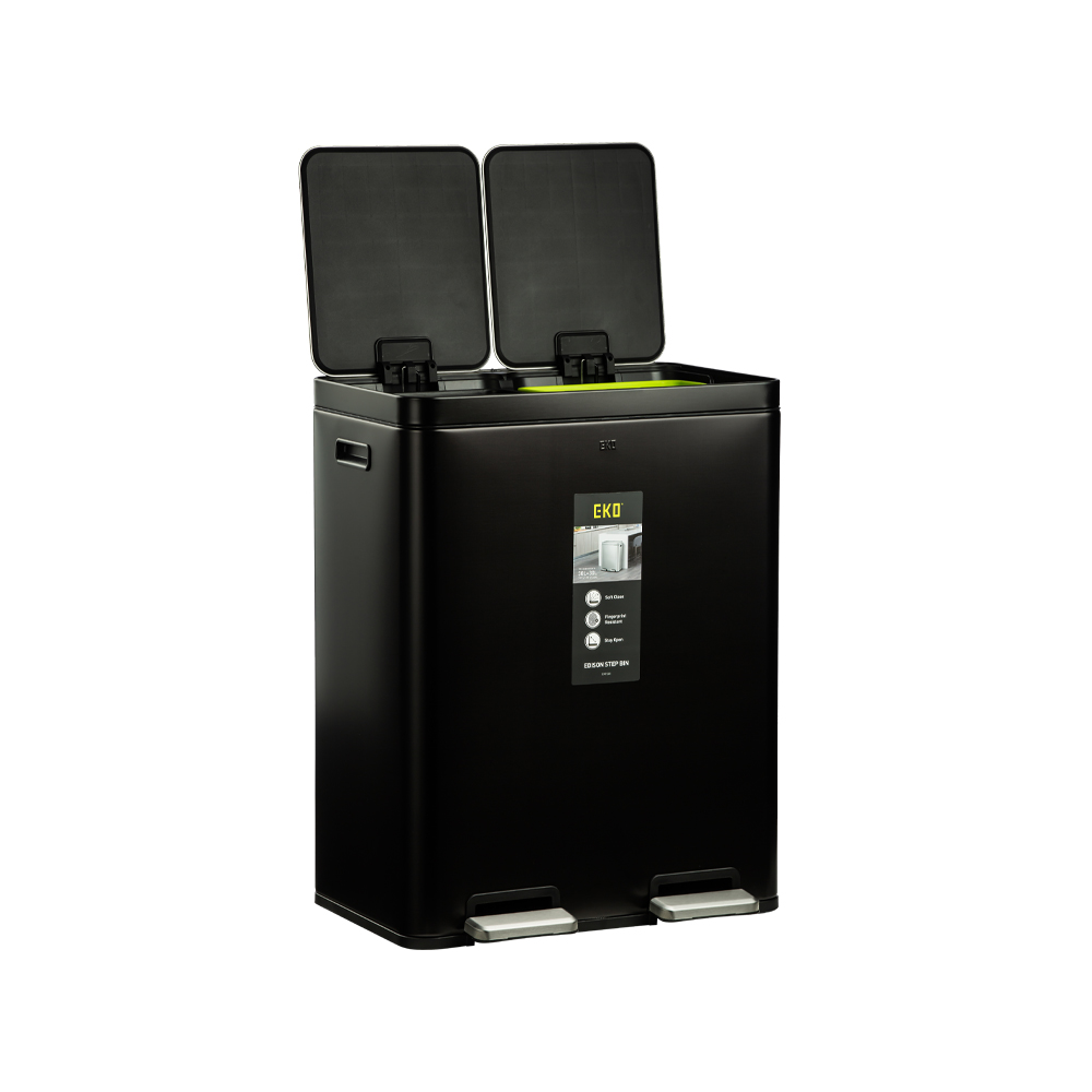 سطل زباله دو مخزنه دو پداله مدل 9248P-MBS از برند اکو، با ظرفیت 30+30 لیتر (مجموع 60 لیتر) و رنگ مشکی شیک، از متریال استنلس استیل ساخته شده و ظاهری بسیار مدرن، لوکس و جذاب دارد که نور را به نرمی منعکس میکند و حس تمیزی، آرامش و حرفهای بودن را به آشپزخانه یا سرویس بهداشتی میبخشد. طراحی مستطیلی مینیمال با دو درب و پدال مستقل، بدنه صاف و مقاوم به لک انگشت در رنگ مشکی، آن را به یکی از زیباترین و کاربردیترین سطلهای دو مخزنه بازار تبدیل کرده است.