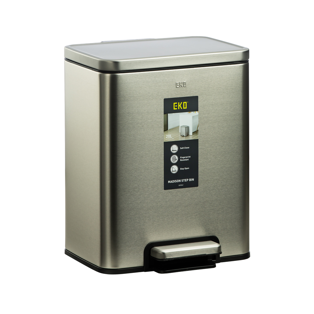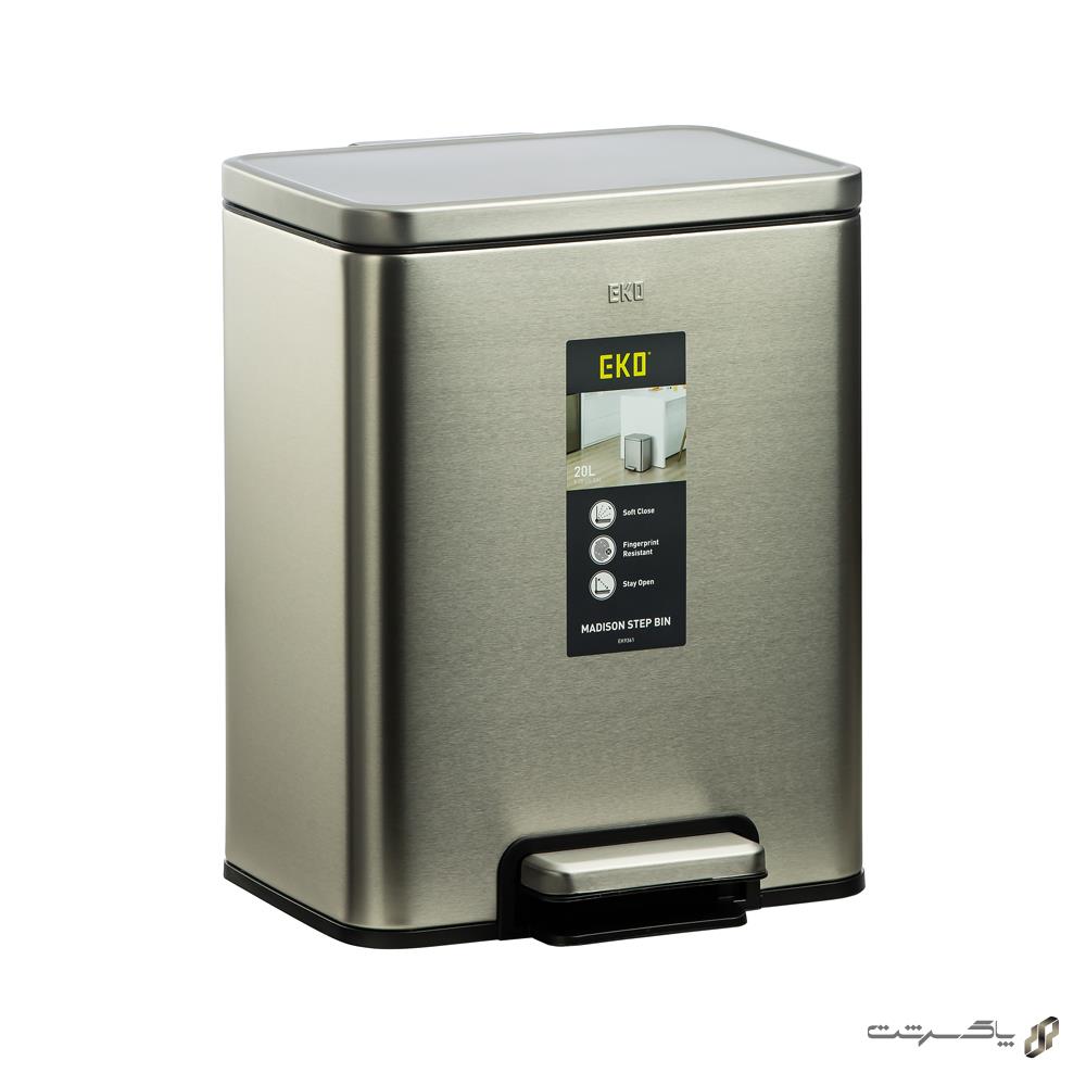 سطل زباله ۲۰ لیتری مدل 9361MMT-20L سری MADISON برند اکو، ساختهشده از متریال استنلس استیل ضدزنگ با طراحی مستطیلی بسیار شیک و مدرن، ظاهری حرفهای، تمیز و فوقالعاده لوکس به آشپزخانه، سرویس بهداشتی یا فضاهای کوچک شما میبخشد. این استیل درخشان و جذاب، فضا را روشن، مرتب و همیشه نو نشان میدهد و بهترین انتخاب برای دکوراسیونهای مدرن و مینیمال است.
