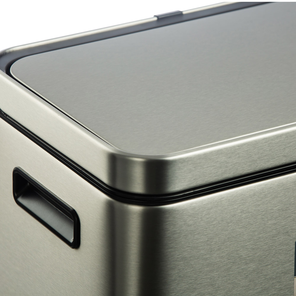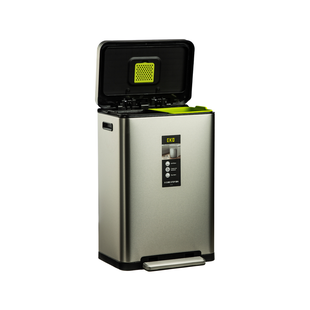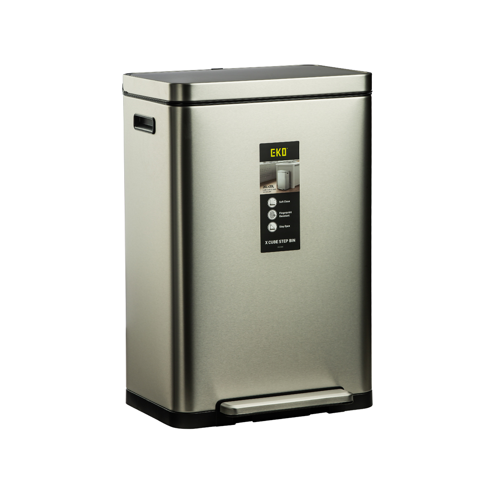 سطل زباله دو مخزنه ۴۰ لیتر (۲۰L+۲۰L) مدل 2368MMT سری Pro برند اکو، ساختهشده از متریال استنلس استیل ضدزنگ با طراحی مستطیلی بسیار شیک و مدرن، ظاهری حرفهای، تمیز و فوقالعاده لوکس به آشپزخانه، سرویس بهداشتی یا فضاهای تجاری شما میبخشد. این استیل درخشان و جذاب، فضا را روشن، مرتب و همیشه نو نشان میدهد و بهترین انتخاب برای دکوراسیونهای مدرن و حرفهای است.