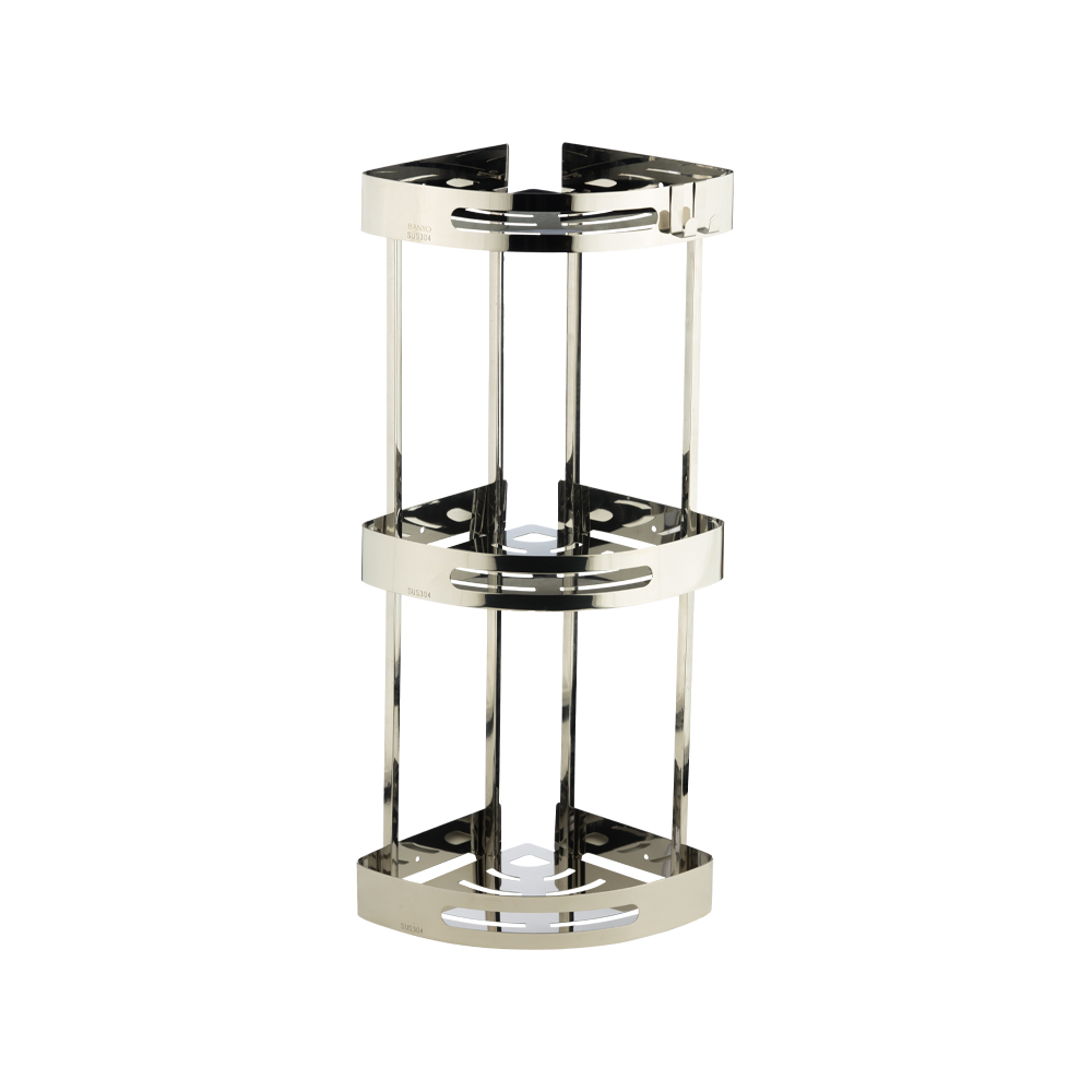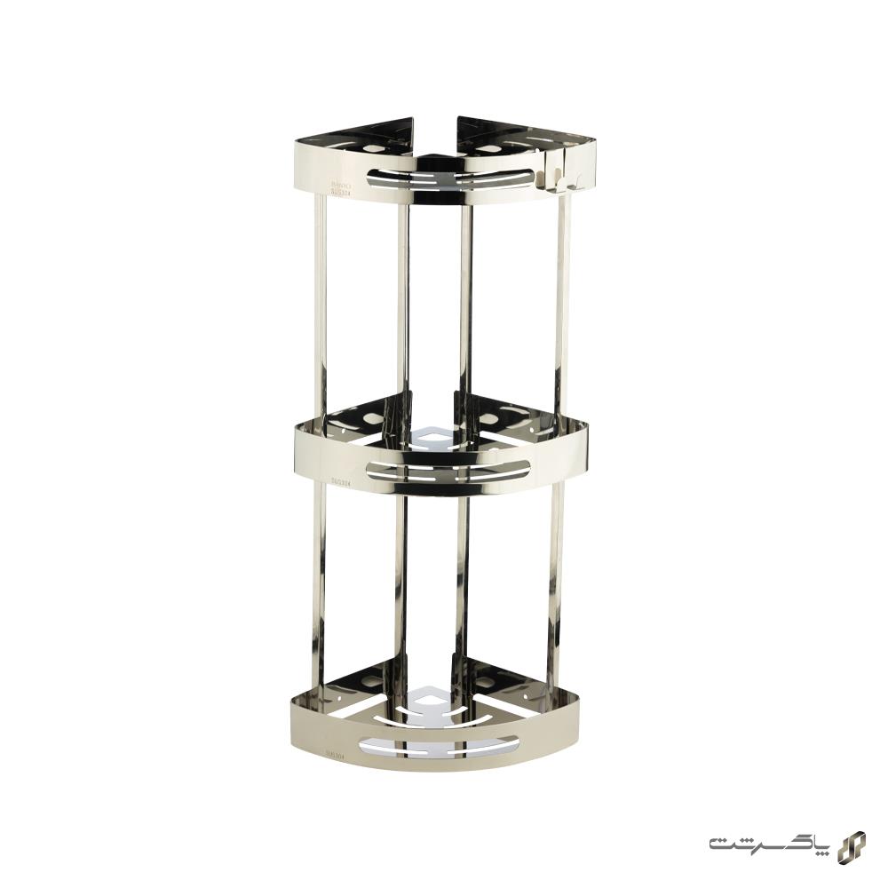 شلف کنج سه طبقه کروم مدل ۲۰۱۳/CR برند اسمارت متریال استنلس استیل، با رنگ کروم براق و درخشان، ظاهری کلاسیک، تمیز و بسیار شیک به حمام شما میبخشد. طراحی مینیمال با خطوط صاف و انعکاس نور کروم، فضایی روشن، مرتب و حرفهای ایجاد میکند که با هر سبک دکوراسیونی فوقالعاده هماهنگ است.