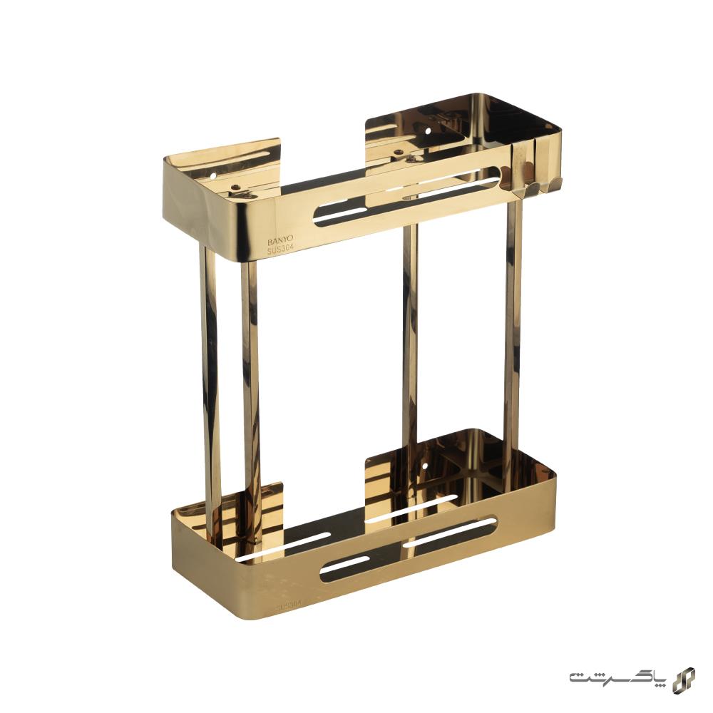 شلف مستطیل دوطبقه طلایی مدل ۲۰۲۲/GO برند اسمارت متریال استنلس استیل، با رنگ طلایی گرم و براق، ظاهری لوکس، مجلل و بسیار شیک به حمام یا سرویس بهداشتی شما میبخشد. طراحی مستطیلی ساده با خطوط تمیز و درخشش طلایی، فضایی مرتب، گرم و حرفهای ایجاد میکند که با دکوراسیونهای مدرن لوکس، کلاسیک یا نئوکلاسیک فوقالعاده هماهنگ است.