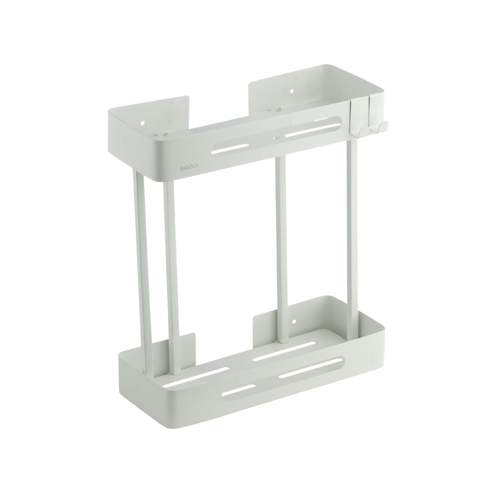 شلف مستطیل دوطبقه سفید مدل ۲۰۲۲/WH برند اسمارت متریال استنلس استیل، با رنگ سفید خالص، ظاهری بسیار تمیز، روشن و مینیمال به حمام یا سرویس بهداشتی شما میبخشد. طراحی مستطیلی ساده با خطوط ظریف و سطح ضد لک، فضایی مرتب، آرام و حرفهای ایجاد میکند که با دکوراسیونهای اسکاندیناوی، روشن یا مدرن فوقالعاده هماهنگ است.
