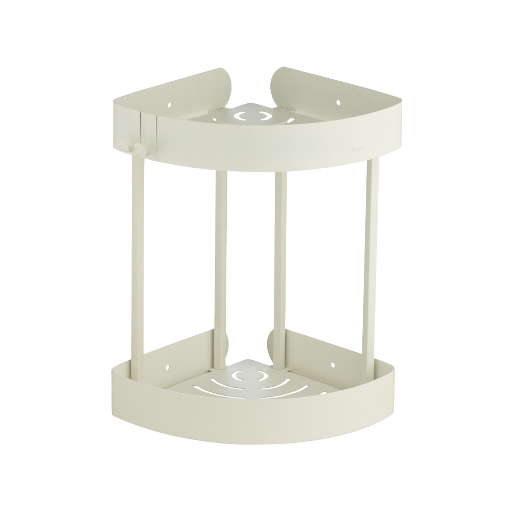 شلف کنج دوطبقه سفید مدل ۱۰۱۲/WH برند اسمارت متریال استنلس استیل، با رنگ سفید خالص، ظاهری فوقالعاده تمیز، روشن و مینیمال به حمام یا سرویس بهداشتی شما میبخشد. طراحی کنج دوطبقه با خطوط ظریف و سطح ضد لک، فضایی بسیار مرتب، آرام و حرفهای ایجاد میکند که با دکوراسیونهای روشن و مدرن فوقالعاده هماهنگ است.