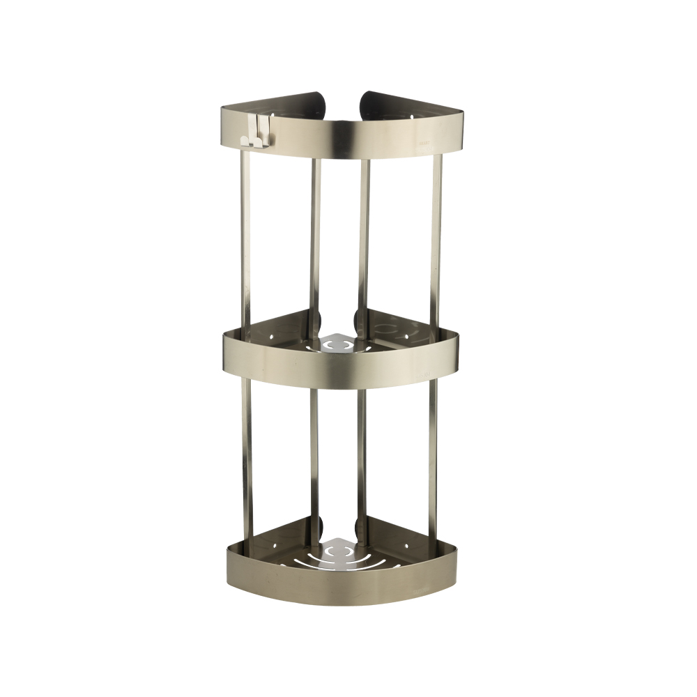شلف کنج سه طبقه خشدار مدل ۱۰۱۳/BN برند اسمارت، با رنگ نیکل خشدار و بافت ظریف، ظاهری بسیار مدرن، صنعتی و شیک به حمام یا سرویس بهداشتی شما میبخشد. طراحی کنج سه طبقه با خطوط تمیز و سطح خشدار ضد لک، فضایی مرتب، حرفهای و امروزی ایجاد میکند که با دکوراسیونهای مدرن، صنعتی یا کنتراستدار فوقالعاده هماهنگ است.