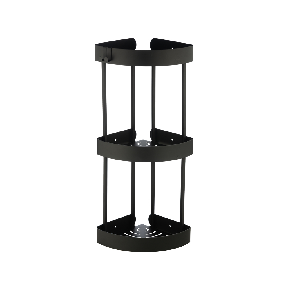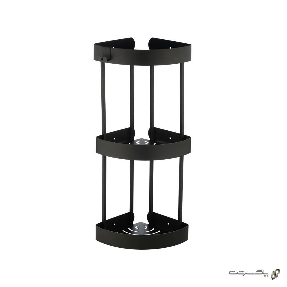 شلف کنج سه طبقه مشکی مدل ۱۰۱۳/BL برند اسمارت متریال استنلس استیل، با رنگ مشکی عمیق و قدرتمند، ظاهری بسیار مدرن، جسورانه و شیک به حمام یا سرویس بهداشتی شما میبخشد. طراحی کنج سه طبقه با خطوط تمیز و سطح ضد لک، فضایی مرتب، حرفهای و امروزی ایجاد میکند که با دکوراسیونهای صنعتی، تاریک یا کنتراستدار فوقالعاده هماهنگ است.