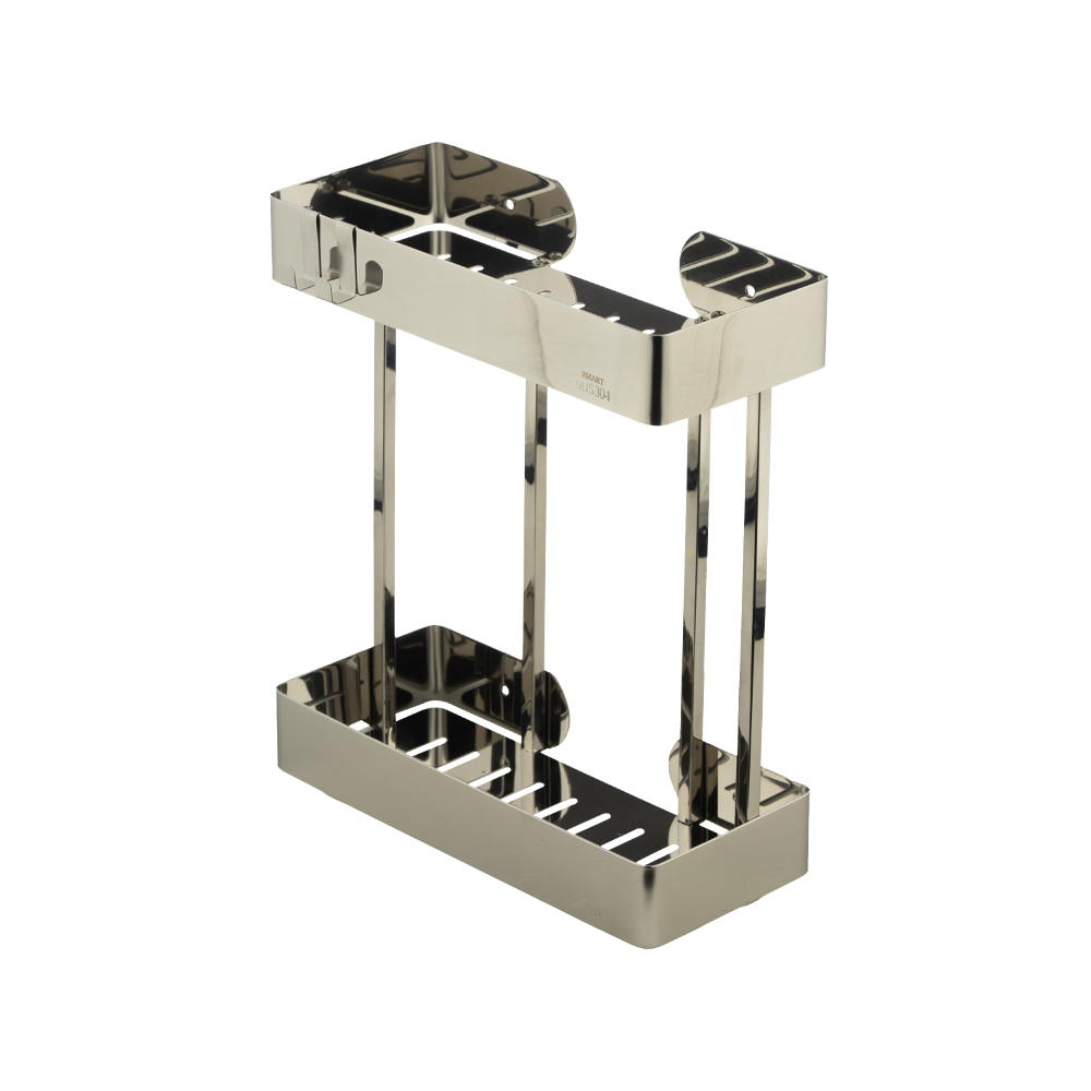 شلف مستطیل دوطبقه کروم مدل ۱۰۲۲/CR برند اسمارت متریال استنلس استیل، با رنگ کروم براق و آینهای، ظاهری بسیار روشن، تمیز و کلاسیک به حمام یا سرویس بهداشتی شما میبخشد. طراحی مستطیلی دوطبقه با خطوط صاف و درخشش خیرهکننده کروم، فضایی مرتب، حرفهای و همیشه تازه ایجاد میکند که با هر سبک دکوراسیونی فوقالعاده هماهنگ است.