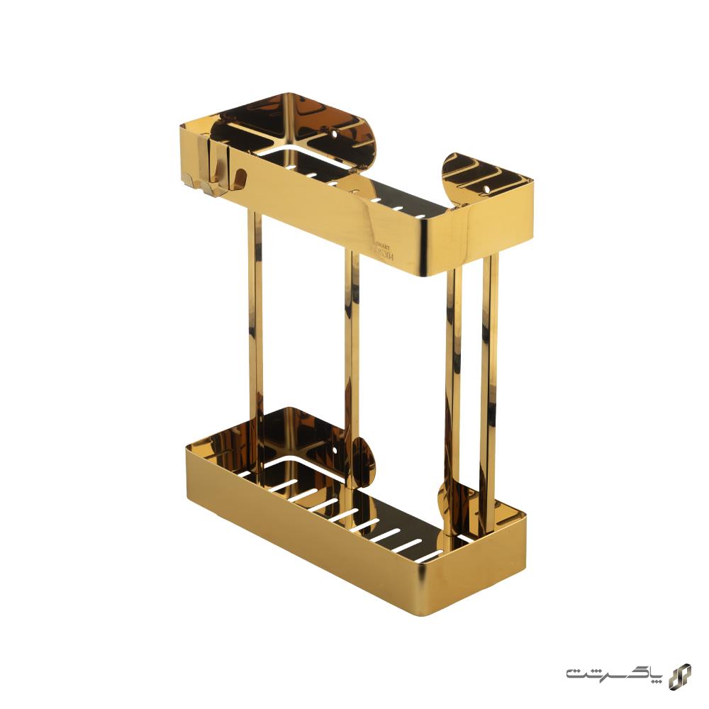 شلف مستطیل دوطبقه طلایی مدل ۱۰۲۲/GO برند اسمارت متریال استنلس استیل، با رنگ طلایی گرم و براق، ظاهری بسیار لوکس، مجلل و شیک به حمام یا سرویس بهداشتی شما میبخشد. طراحی مستطیلی دوطبقه با خطوط تمیز و درخشش طلایی، فضایی مرتب، گرم و باپرستیژ ایجاد میکند که با دکوراسیونهای مدرن لوکس، نئوکلاسیک یا کلاسیک فوقالعاده هماهنگ است.