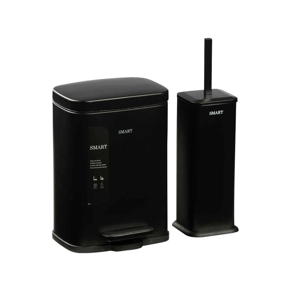 سطل و برس توالت ۵ لیتر مدل 6843-Matt black -05L سری DORA برند اسمارت با رنگ مشکی بسیار شیک و جذاب، ظاهری مدرن، جسور و فوقالعاده لوکس به سرویس بهداشتی شما میبخشد. این رنگ مشکی عمیق و خیرهکننده، فضا را حرفهای، مرتب و بسیار امروزی نشان میدهد و بهترین انتخاب برای دکوراسیونهای مدرن و صنعتی است.
