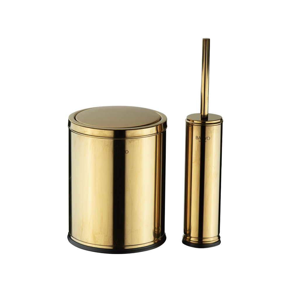 سطل و برس توالت ۵ لیتر مدل 805/Shiny golden برند اسمارت سری Romana بادبزنی با رنگ طلایی براق بسیار شیک و لوکس، ظاهری مجلل، گرم و فوقالعاده حرفهای به سرویس بهداشتی شما میبخشد. این طلایی براق خیرهکننده، فضا را روشن، اشرافی و همیشه جذاب نشان میدهد و بهترین انتخاب برای دکوراسیونهای لوکس و کلاسیک است.