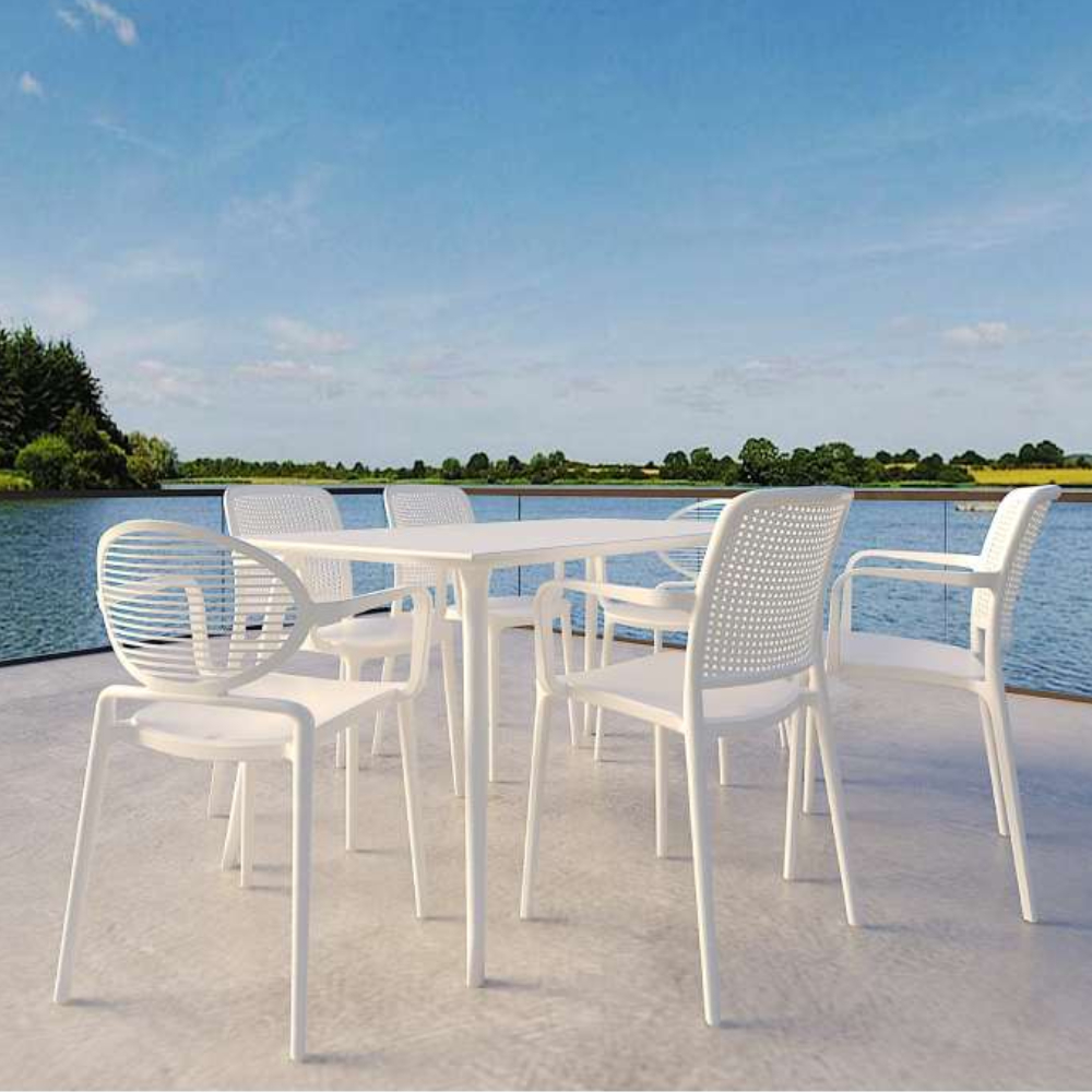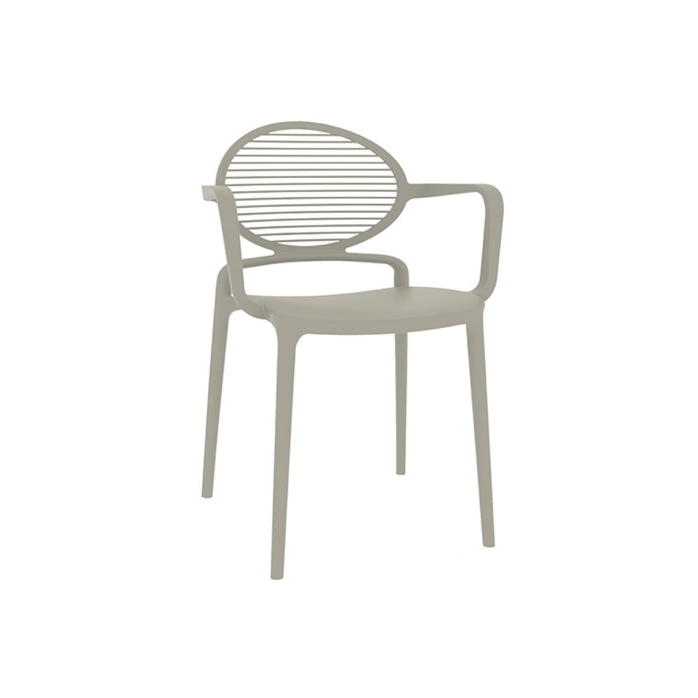 صندلی پلیمری نظری مدل ماکان دستهدار N496، با طراحی خاص پشتی بیضیشکل و خطوط افقی، گزینهای جذاب و مقاوم برای فضای باز، رستوران، کافه یا محیطهای خانگی است. دستهدار بودن، نشیمن صاف و طراحی متفاوت آن، این مدل را از سایر صندلیهای پلیمری متمایز میکند.