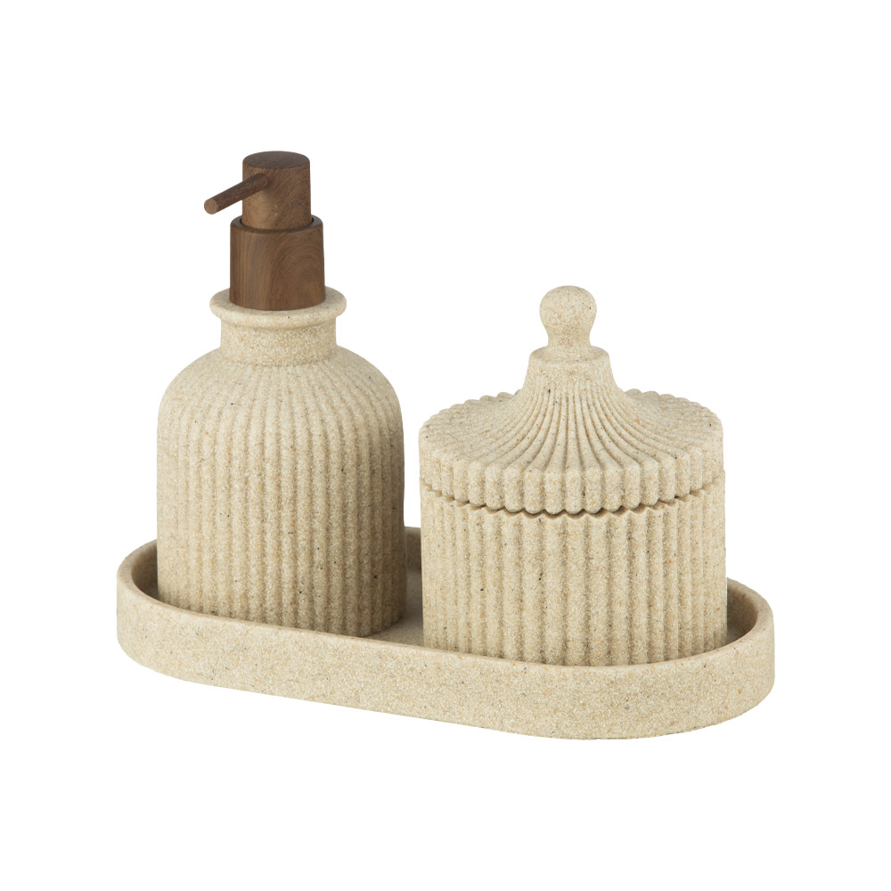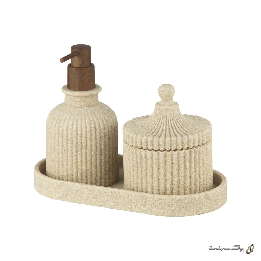 ست ۳ پارچه رزین کرم رنگ مدل AD-280 A/Cream از برند اسمارت شامل یک سینی، یک جای مایع و یک ظرف لوازم بهداشتی است. این ست اکسسوری سرویس بهداشتی و حمام با رنگ کرم هماهنگ و متریال رزین، زیبایی و نظم را به فضای روشویی یا سینک آشپزخانه میآورد.