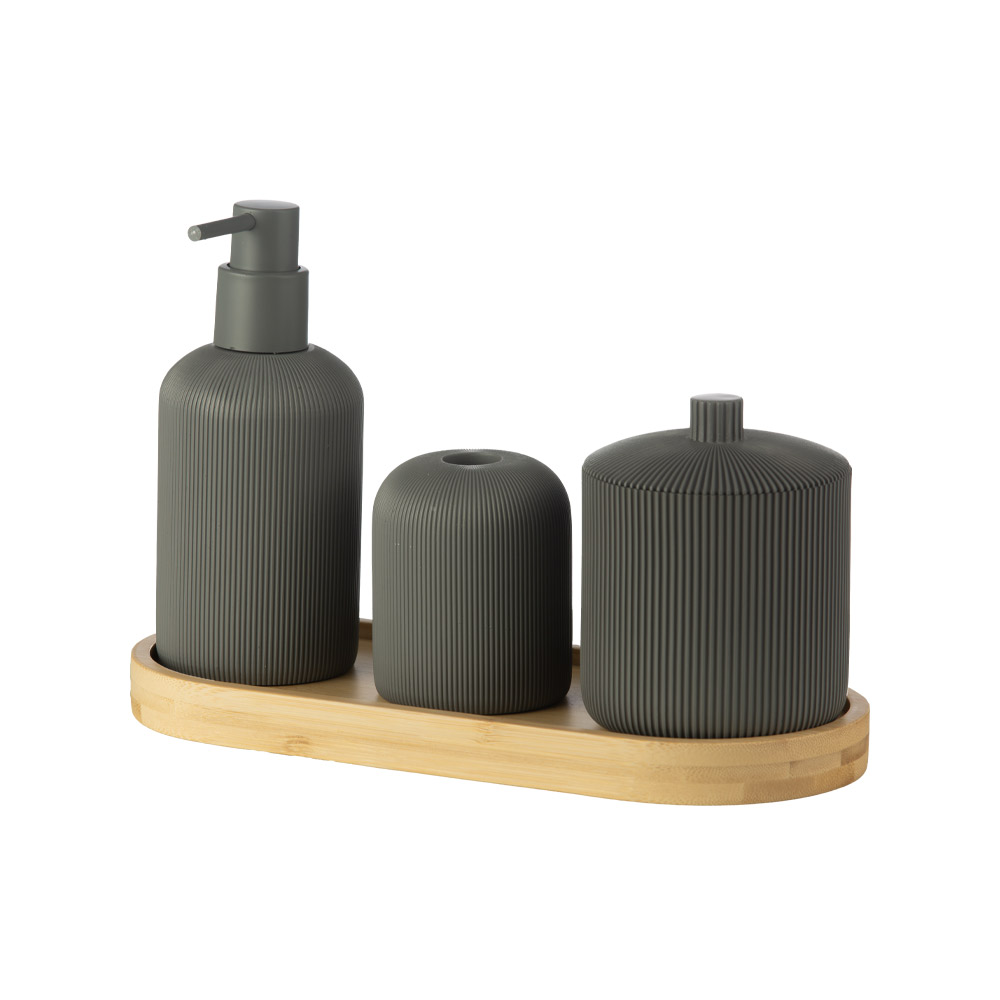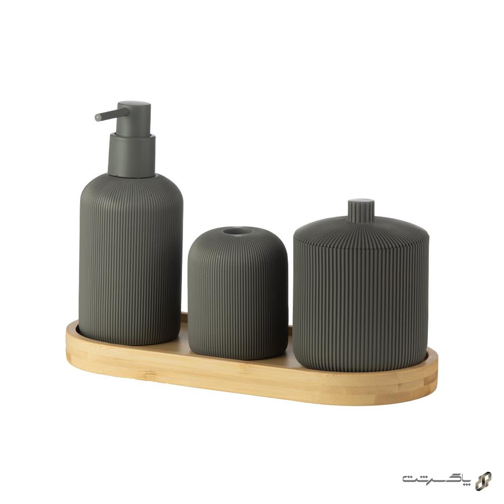 ست ۴ پارچه رزین طوسی رنگ مدل AD-300 C/Gray از برند اسمارت شامل جا مایع، جا مسواکی، سینی و ظرف لوازم بهداشتی است. این ست اکسسوری سرویس بهداشتی و حمام با رنگ طوسی هماهنگ و متریال رزین، زیبایی و نظم را به فضای روشویی یا سینک آشپزخانه میآورد.