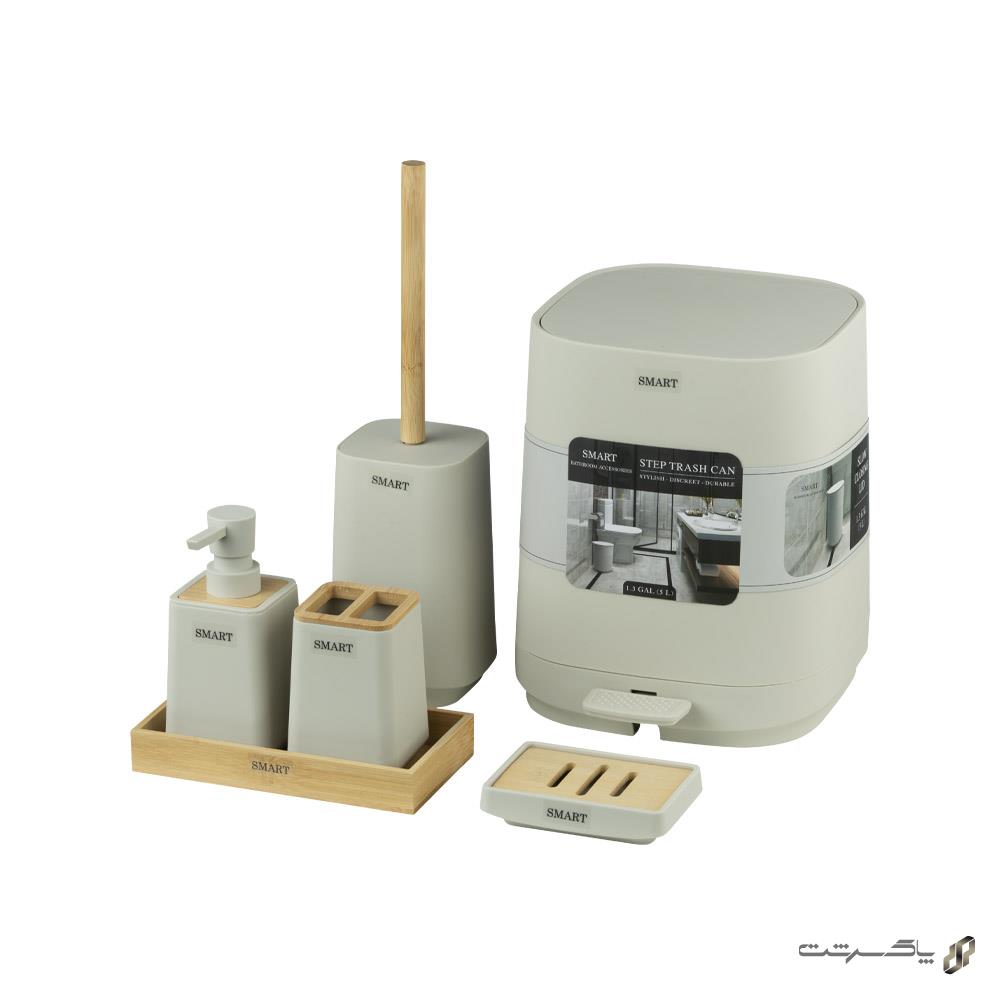 ست اکسسوری سرویس بهداشتی ۶ تکه ونیز کرم مدل Veniz/Cream از برند اسمارت شامل جا مایع، جا مسواکی، سینی، جا صابونی، فرچه توالتشوی و سطل زباله است. این ست اکسسوری سرویس بهداشتی و حمام با رنگ کرم هماهنگ و متریال رزین، زیبایی و نظم را به فضای سرویس بهداشتی میآورد.