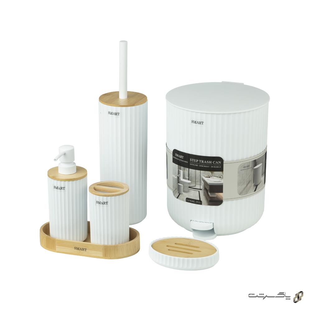 ست اکسسوری سرویس بهداشتی و حمام ۶ تکه سفید Casper/WH برند اسمارت، با رنگ سفید خالص، ظاهری فوقالعاده تمیز، روشن و مینیمال به سرویس بهداشتی شما میبخشد. طراحی هماهنگ و خطوط ساده تمام قطعات، فضایی بسیار مرتب، آرام، بهداشتی و حرفهای ایجاد میکند که با دکوراسیونهای روشن، اسکاندیناوی و مدرن فوقالعاده هماهنگ است.